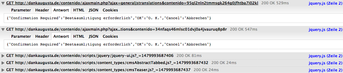Danke für die Tipps, es hat aber nichts bewirkt. In der Konsole kommen JS Meldungen mit denen ich nicht viel anfangen kann.