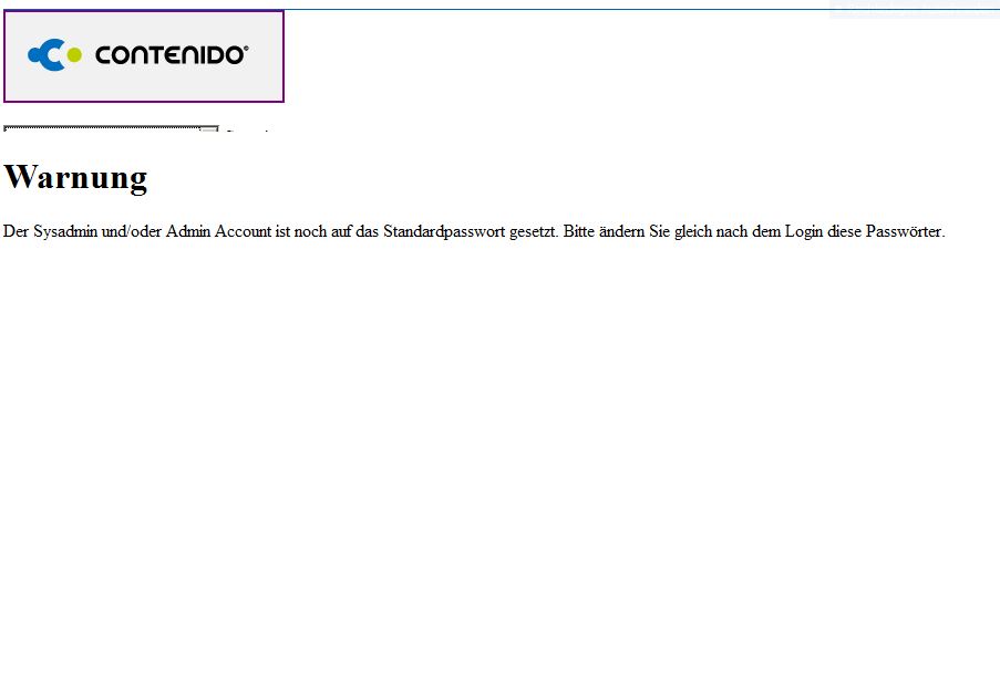 Dann kommt die Information, dass noch das Standardpasswort gesetzt ist.