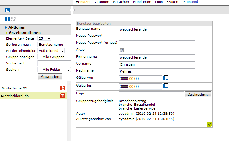 ich befinde mich im Backend :) Frontend -> User auswählen -> Benutzernamen etc sehen :)