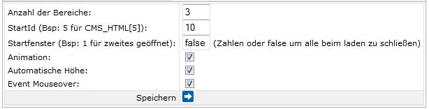 Im Inputbereich kann man eine unbegrenzte Anzahl von Arccordionbereichen einstellen.