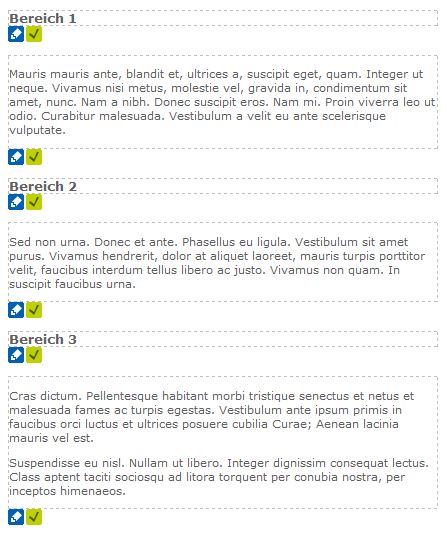 Im Editor hat man dann dementsprechend pro Bereich einmal eine Headline (CMS_HEAD) und einen Textbereich(CMS_HTML).