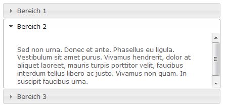 Im Frontend erfolgt die Ausgabe der Bereiche dann als Accordion.