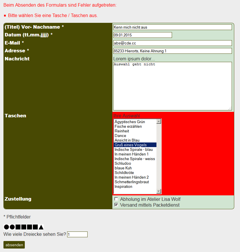 - eMail (inkl. Prüfung auf korrekte Mailadresse)