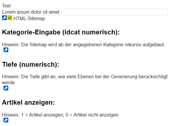 ich bin auf einen Fehler gestoßen. Ggf. kann den jemand reproduzieren. Das Sitemapmodul "content_sitemap_html" bietet ja die Möglichkeit, die Map mit oder ohne Anzeige der in den Kategorien enthaltenen Artikeln aufzubauen. Allerdings hat es keine Auswirkungen, in der entsprechenden Konfi eine 1 einzutragen. Wie bei der 0 werden nur die Kategorien aufgebaut.