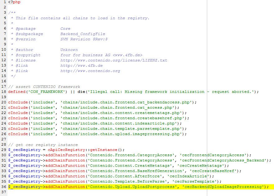 Das Chain-Programm wird in /contenido/includes/chains/ abgelegt. 2. Die Chain in Contenido "bekannt" zu machen