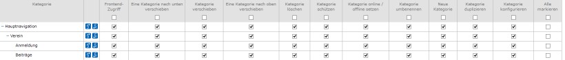 Ich habe alle Rechte für bestimmte Kategoriepunkte gesetzt.