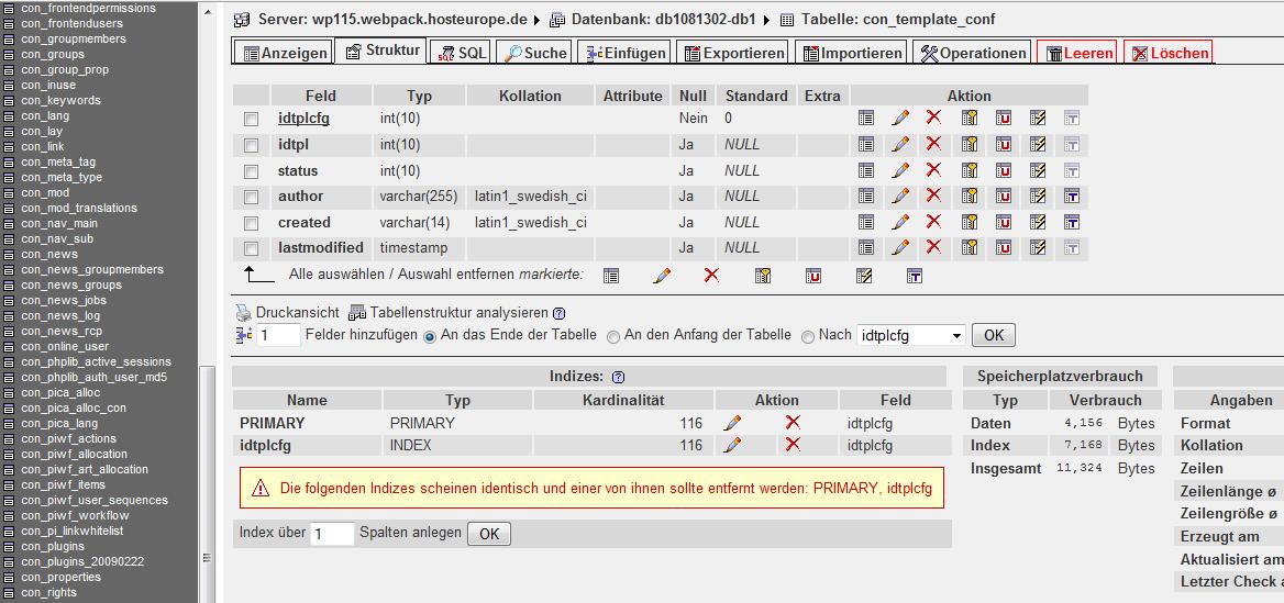 Ich habe mir mal alle Tabellen anzeigen lassen. Dabei ist mir nur folgendes aufgefallen (siehe Bild).