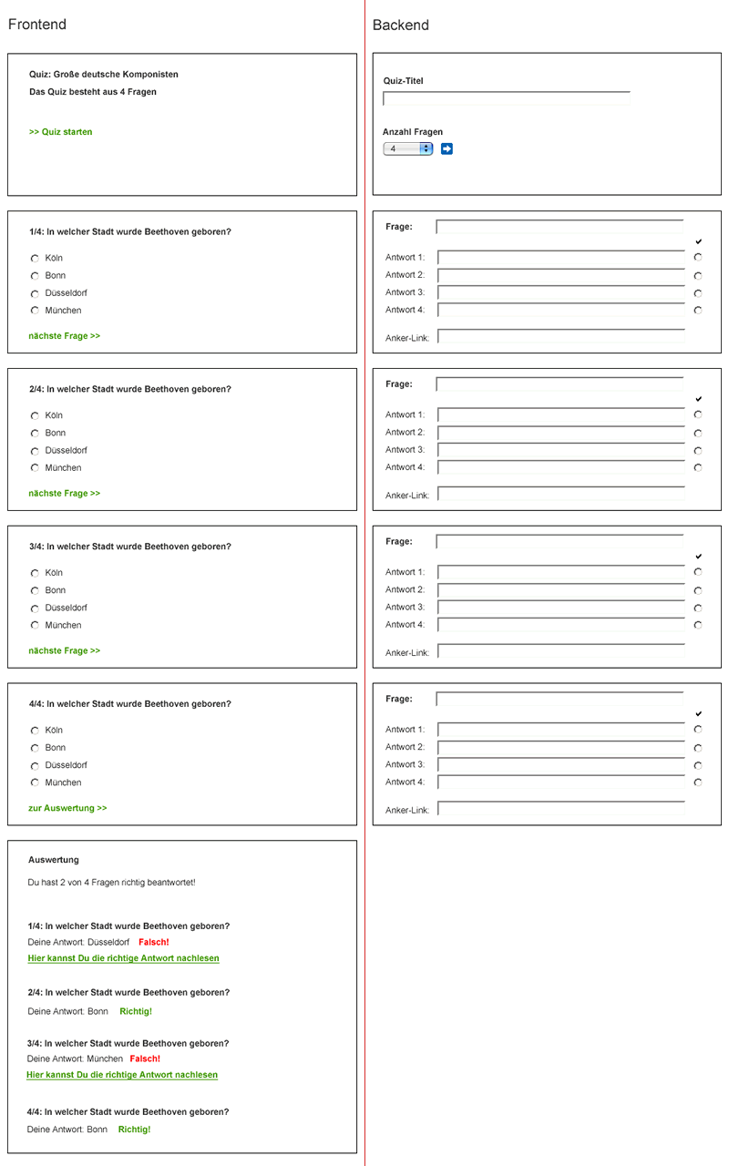 2.) Coden bzw. Anpassen eines Quiz-Moduls. Anforderungen sind wohl am einfachsten bildlich darzustellen:
