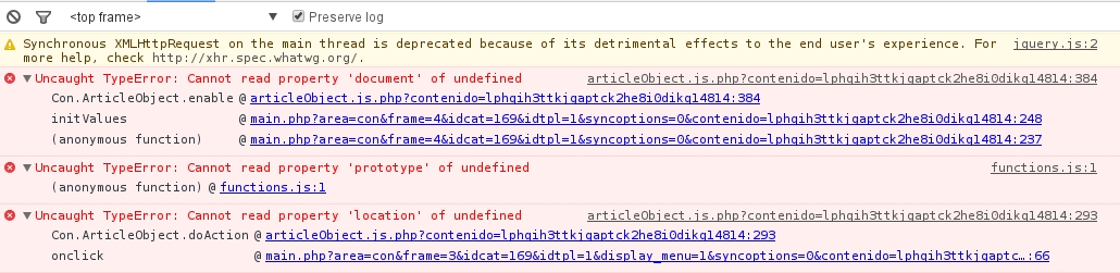 Folgendes erscheint, wenn ich Contenido mit Shift+F5 neu lade, dann in Content ⇒ Artikel gehe und dort einen Artikel in einer Kategorie wähle ⇒ danach auf Konfiguration klicke (wo sich nichts tut, und der letzte Fehler auf dem Bild geworfen wird)